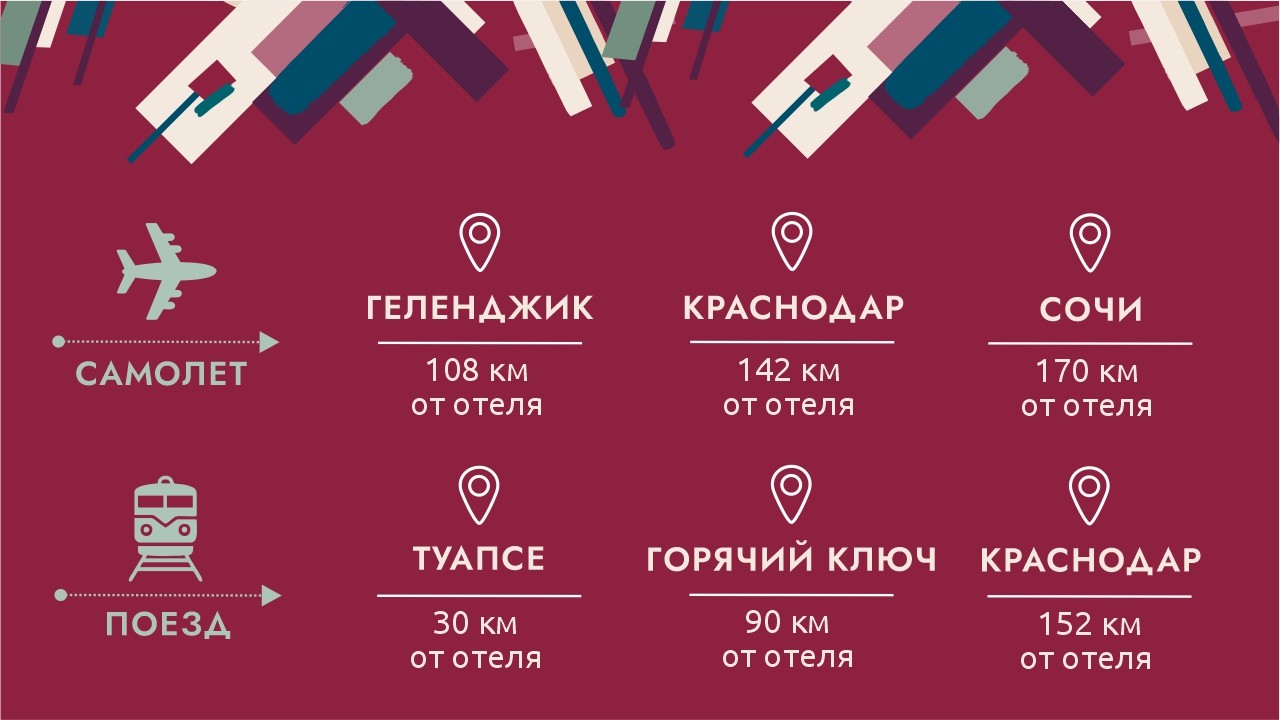 удобная логистика: автомобильные трассы, всего 1.5 часа от аэропорта Геленджика, 3 часа от аэропорта Сочи и 30 минут от ЖД Туапсе
