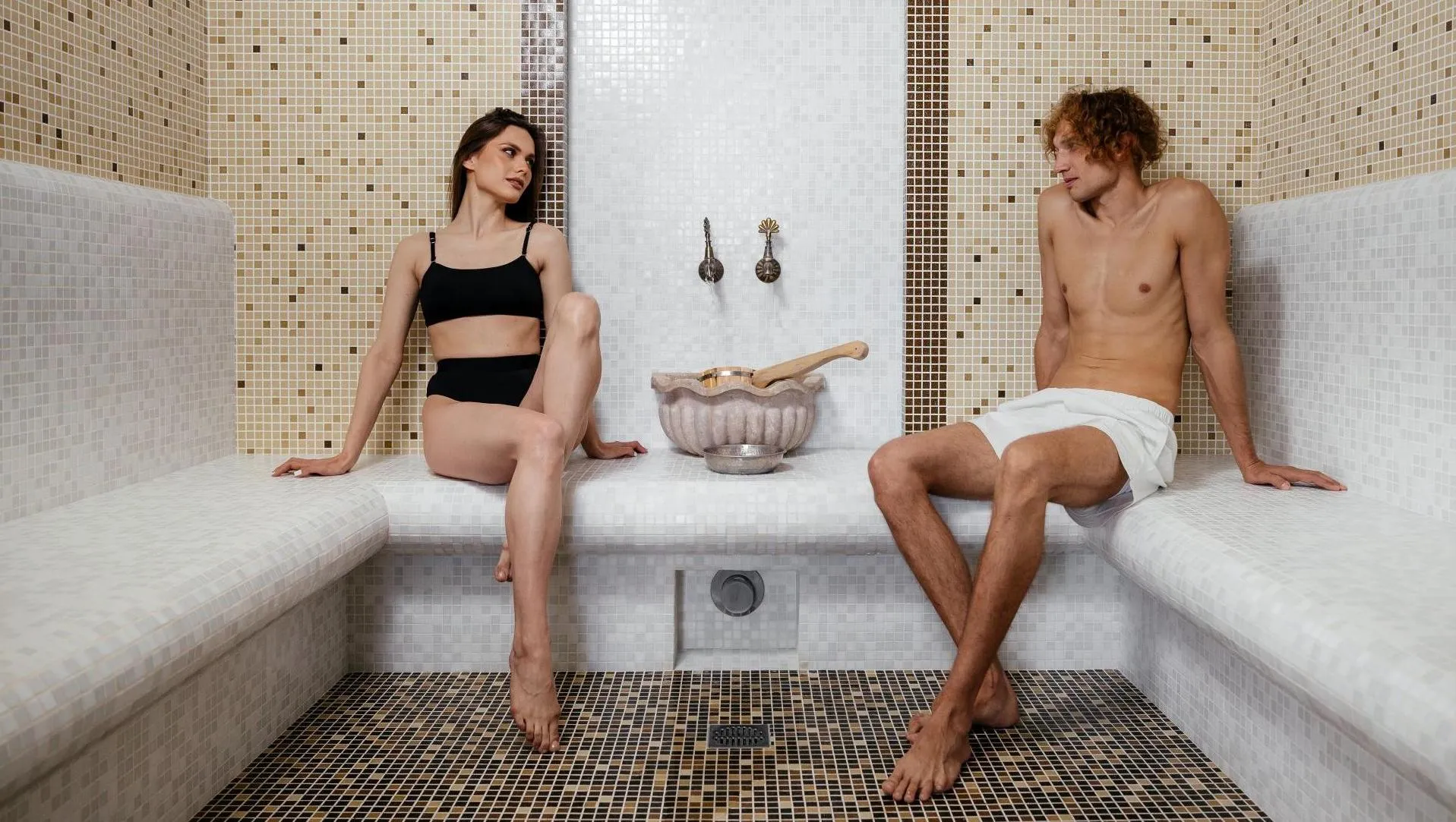 Хаммам не зря называют баней красоты, ведь именно в нем в несколько раз интенсивнее воздействие косметических процедур. Сочетание высокого уровня влажности – до 100% и температуры в пределах 40-50°С создаёт ощущение тропиков. Турецкую баню от остальных также отличает то, что в ней можно находиться достаточно долго, наслаждаясь общением с друзьями. Процедура оказывает положительный эффект на органы дыхания, нормализует сон, дарит чувство лёгкости.